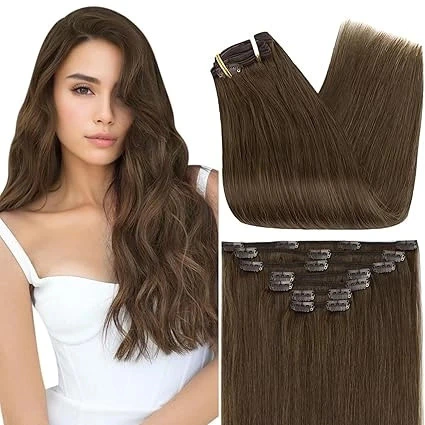 Brilho Real Hair – Extensões de Cabelo Humano Brasileiro Clip-in, Liso Natural, 105g (7 Peças)